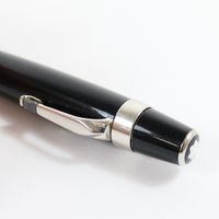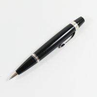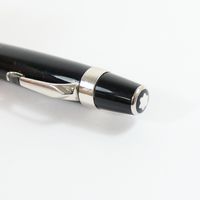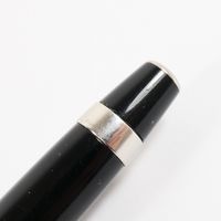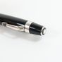MONTBLANC : "Bohème" stylo roller en résine noire et métal argenté. Pierre noire facettée à l'agrafe. (Longueur : 11 cm environ). Signé et numéroté.