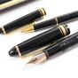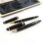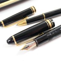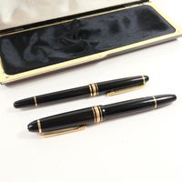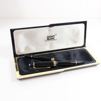 MONTBLANC : modèle Meisterstuck, lot dans un écrin MONTBLANC comprenant : un stylo plume N° 146 en résine et métal doré. Plume en or 750 mil. Exemptée [Art. 524 bis du CGI al. C]. Signé et numéroté. Et un stylo roller en résine noire et métal doré. Signé et numéroté.