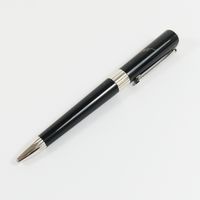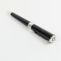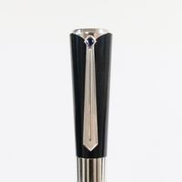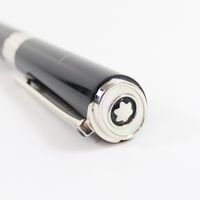 MONTBLANC : Stylo bille modèle "Marlène Dietrich" de la collection "Diva" en hommage à l’actrice. En résine noire (micro-rayures), métal argenté, nacre et petit saphir. (Longueur : 14 cm). Numéroté.