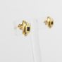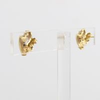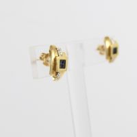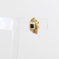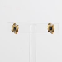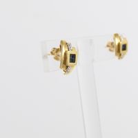 Paire de boucles d'oreilles : deux ors 750 mil. Ornée de pierres imitation bleues. (Tige déformée) (Longueur : 1,3 cm environ). 4,4 g. brut.