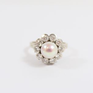 Paire de clips : en or gris 750 mil. Ornée d'une perle de culture (Diam. : 8,7 mm environ) (Longueur : 1,4 cm environ). 4,5 g. brut .
