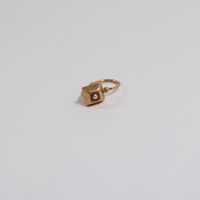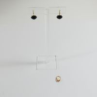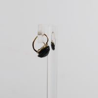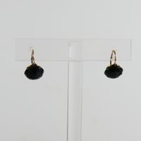 Paire de dormeuses : en or 750 mil. Ornée de pierres noires. (Longueur : 1,4 cm environ), on y joint une dormeuse en or 750 mil. Ornée d'une semence de perle. (Longueur : 1,4 cm environ). 3,5 g. brut.