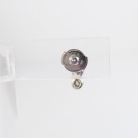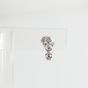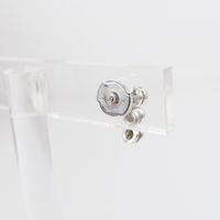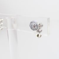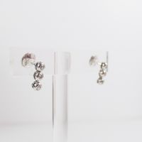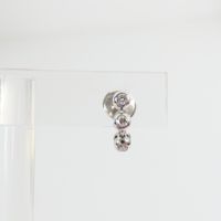Paire de pendants d'oreille : en or gris 750 mil. Sertis clos de trois diamants brillantés d'environ 0,04 carat chaque. (Longueur : 1,1 cm environ). 3 g. brut.