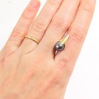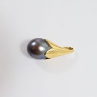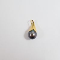 Pendentif : en or 750 mil. Ornée d'une perle du culture grise. (Diam : 8,2 mm environ) (Longueur : 1,8 cm environ). 1,7 g. brut.