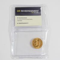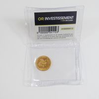Pièce de monnaie : de 5 dollars US en or 999,9 mil. Datée 1895. Sous scellée "Or investissement". Poids seule : 8,35 g. Poids total : 13,6 g. brut.