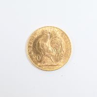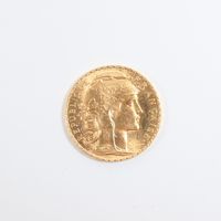 Pièce de monnaie : de 20 FRF en or 900 mil. Datée de 1912. 6,5 g.
