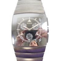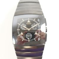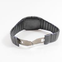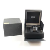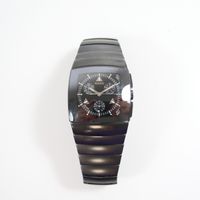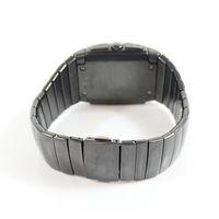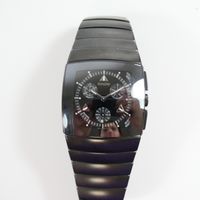 RADO : "Dia Star" bracelet-montre en céramique noire. Boîtier carré. Cadran noir à trois sous compteurs. REF : 538-0764.3. Mouvement à quartz. (Tour de poignet : 18,5 cm environ) (Avec carte, maillons supplémentaires. Boîte et écrin.).