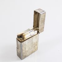 S.T.DUPONT : briquet en métal argenté. (Dim. 4,8 cm x 3,5 cm environ). Signé et numéroté.