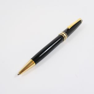 80 / 100 €MONTBLANC Meisterstuck : Stylo-bille en résine noire et métal doré. Signé. (Usures).