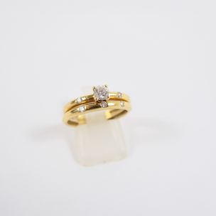 250 / 350 €Bague "toi & moi" : en or 750 mil. sertie de 2 diamants taille ancienne de 0,25 ct environ (TDD : 50,5) (monture accidentée). 4,4 g. brut.