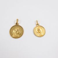 2 médailles religieuses : en or 750 mil. figurant le profil de la Vierge Marie, l'une signée E. DROPSY (diamètre : 1,4 et 1,7 cm) (chocs). 1,9 g.