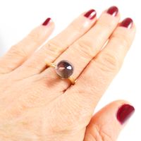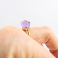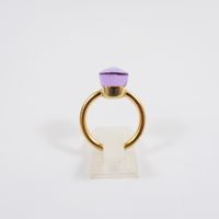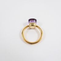 Bague : en or rose 750 mil. sertie d'une améthyste (dimensions : 1 x 1 cm) (TDD : 55). 7 g. brut.