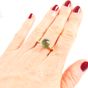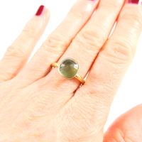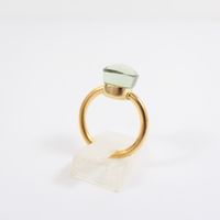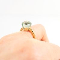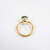 Bague : en or rose 750 mil. sertie d'une prasiolite (dimensions : 1 x 1 cm) (TDD : 55,5). 6,8 g. brut.