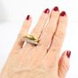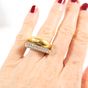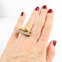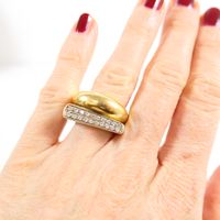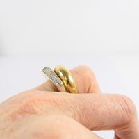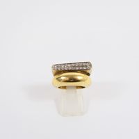 Bague : 2 ors 750 mil. ornée d'un pavage de diamants taille brillant (TDD : 50, avec boules de mise à grandeur interne) (rhodiage à prévoir). 14,5 g. brut.