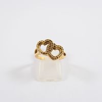 Bague "cœur" : en or 750 mil. composée de 2 cœurs ajourés entrelacés (TDD : 49). 3,8 g.