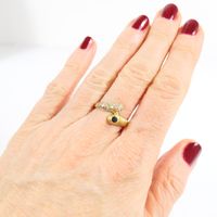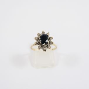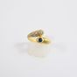 Bague croisée : en or 750 mil. (saphir, diamants taille brillant) (TDD : 56) (traces de colle). 3,3 g. brut.