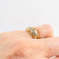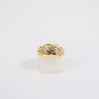 Bague "tresse" : 2 ors 750 mil. (diamants taille 8/8) (TDD : 52,5). 2,6 g. brut.