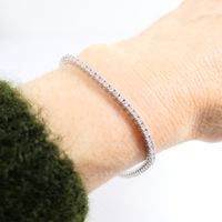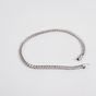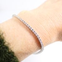 Bracelet ligne : en or gris 750 mil. serti de diamants taille brillant (73 x 0,035 ct environ), avec huit de sûreté) (longueur : 18,3 cm) (très légère déformation). 9,4 g. brut.