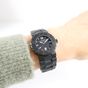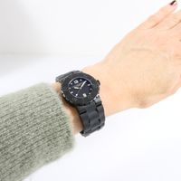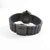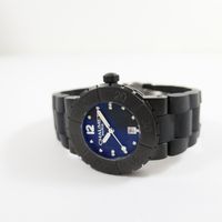 CHAUMET "Class One" : Montre-bracelet de dame, le boîtier rond en titane (diamètre : 33 mm), lunette graduée tournante unidirectionnelle, cadran noir à index diamanté et chiffre arabe, les aiguilles et le chiffre 12 luminescents, guichet dateur à 6H, mouvement à quartz, sur bracelet en caoutchouc à boucle déployante en acier signée (longueur : 16 cm environ). Avec son écrin.