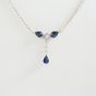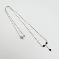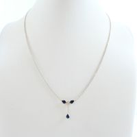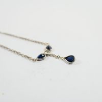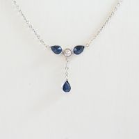 Collier : en or 750 mil. à maillons forçat rond retenant un motif central serti de saphirs et d'1 pierre imitation blanche cassée (longueur : 39,5 cm) (salissures). 2,1 g. brut.