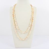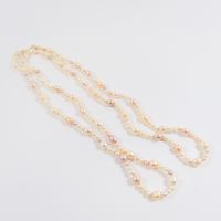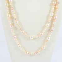 Collier d'un rang de perles de culture d'eau douce : blanches et rosées de diamètres différents (5,2 à 7,7 mm environ) (longueur : 108 cm environ), sans fermoir.