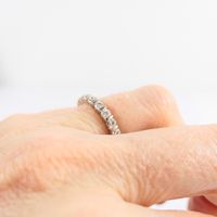 Demi-alliance US : en or gris 750 mil. sertie de diamants taille brillant (9 x 0,08 ct environ) (TDD : 51,5). 3 g. brut.