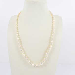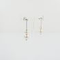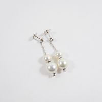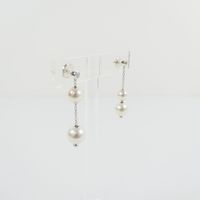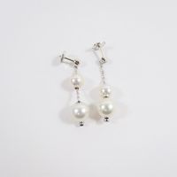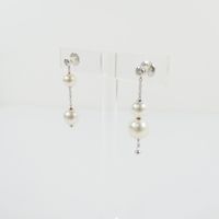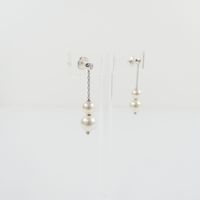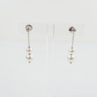 MIKIMOTO "Pearls in motion" : Paire de pendants d'oreilles en or gris 750 mil. composés d'une chaîne à maillons forçat rond retenant 2 perles de culture blanches mobiles (diamètres : 7,4 et 9,3 mm), les extrémités serties de diamants taille brillant (longueur : 4 cm environ), avec systèmes Alpa. Portant le monogramme de la Maison. 6,1 g. brut.