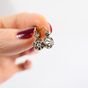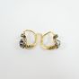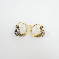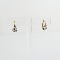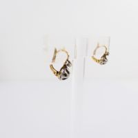 Paire de dormeuses : 2 ors 750 mil. serties d'un petit diamant taille ancienne et de roses (hauteur : 1,4 cm). 2,7 g. brut.