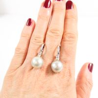 Paire de pendants d'oreilles : en or gris 750 mil. retenant une perle de culture gris clair (diamètre : 12 mm environ, hauteur : 2,8 cm). 10,1 g. brut.