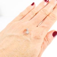 Pendentif : en or gris 750 mil. serti d'un diamant taille brillant de 0,25 ct environ (hauteur : 1 cm) (rhodiage à prévoir). 0,7 g. brut.