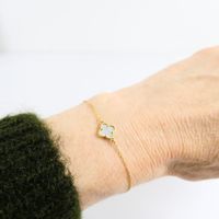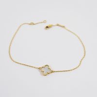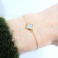 VCA "Sweet Alhambra" : Bracelet en or 750 mil. à maillons forçat limé retenant un trèfle serti de nacre. Signé et numéroté. (Longueur réglable : 19 et 20,5 cm ; largeur du motif : 0,9 cm). 1,8 g. brut.