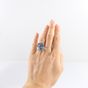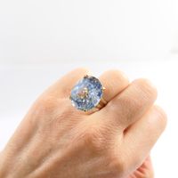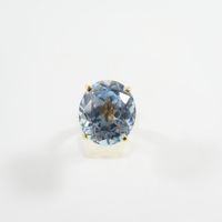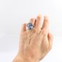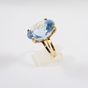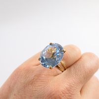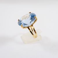 Bague cocktail : en or jaune 750 mil. centrée d'un important spinelle synthétique bleu facetté (2,3cm x 1,8cm environ), serti griffe. Poids brut : 10g