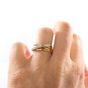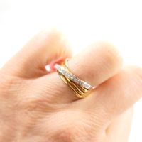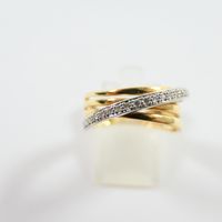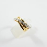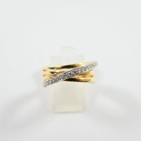 Bague croisée : 2 ors 750 mil., sertie d'une ligne de petits diamants taille brillant. (TDD : 55). Poids brut : 3,6g