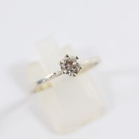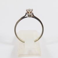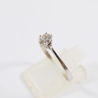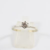 Bague solitaire : en or gris 750 mil. centrée d'un diamant taille brillant (0,3 carat environ). (TDD: 56). (Traces de mise à taille). Poids brut : 1,8g