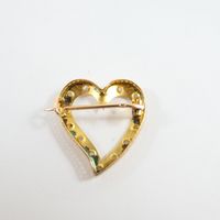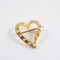 Broche cœur ajourée : en or jaune 750 mil sertie de petits diamant taille rose. (2x2cm environ) (Traces d'oxydation). Travail français. Poids brut : 2g
