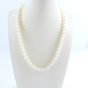 Collier de perles de culture : légèrement en chute (diamètre des perles 7,5mm - 7mm environ) (Longueur : 47 cm environ), fermoir cliquet en or jaune. Poids brut : 32,3g.
