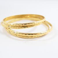 Ensemble de quatre bracelet jonc : en or jaune 750 mil., martelé. (Petites traces de soudures). (Tour de poignet : 20,3cm environ - diamètre intérieur : 6,5cm environ). Poids : 64,1g