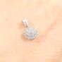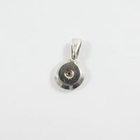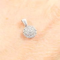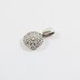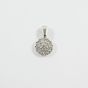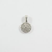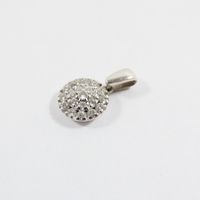 Pendentif circulaire : en or gris 750 mil. pavé de diamants taille brillant (0,03 carats), (diamètre 0,8cm). Poids brut : 1,1g.
