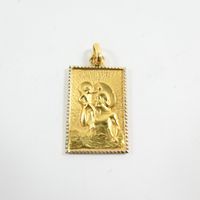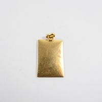 Pendentif rectangulaire : en or jaune 750 mil., à fond rayonnant et au décor de la Trinité. (3 cm avec la bélière x 1,5cm). Poids : 2,6g