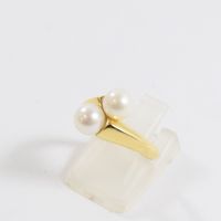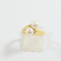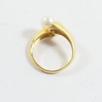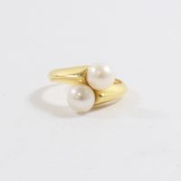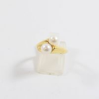 Bague croisée en or 750 mil ornée de 2 perles de culture (Diam : 6 mm environ ; TDD : 50). 3,1 g brut.