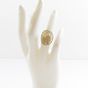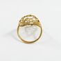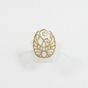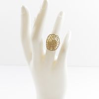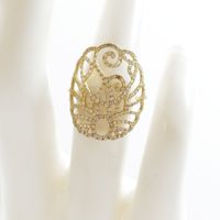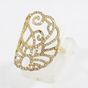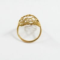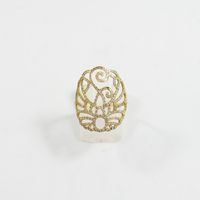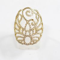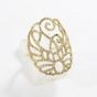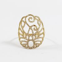 Bague en or 750 mil à motif central ajouré figurant des arabesques diamantées (Dim : 2,2 x 1,7 cm environ) (cassées, manques pierres, restaurations) (TDD : 52). 2,3 g brut.