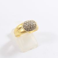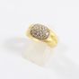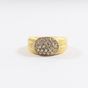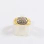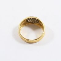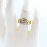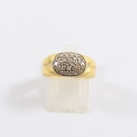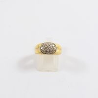 Bague en or 750 mil figurant 2 godrons, centrée d'un motif ovale orné de diamants (Larg : 8 mm ; TDD : 53,5). 4,2 g brut.