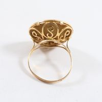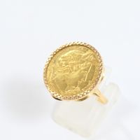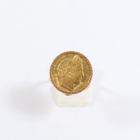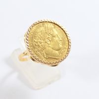 Bague en or 750 mil ornée d'une pièce de 10 frcs français en or 900 mil (Diam : 2 cm environ ; TDD : 54). 6,5 g.