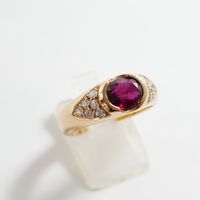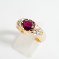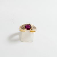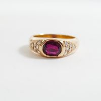 Bague jonc en or 750 mil centrée d'un rubis de bel