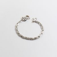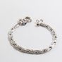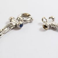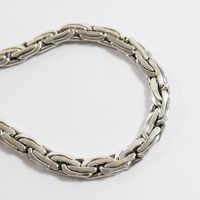 Bracelet à double maillons haricot partiellement guilloché en or gris 750 mil, fermoir orné de cabochons de saphir (manque 1 pierre) (Larg : 6 mm ; Long : 19 cm environ). 16,1 g brut.