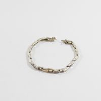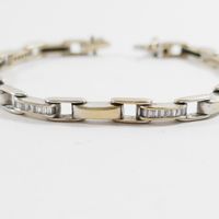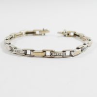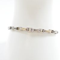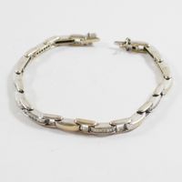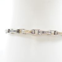 Bracelet en or gris 750 mil à maillons barettes, un sur deux orné d'une ligne de diamants calibrés (Larg : 5 mm ; Long : 18,5 cm). 20,3 g brut.