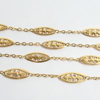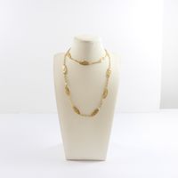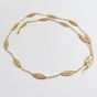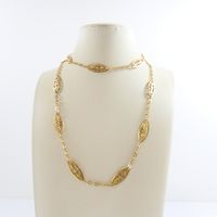 Collier en or 750 mil à maillons ovale et maillons ovale ajourés à décor de palmettes (Dim maillon palmette : 2,4 x 0,9 cm ; Long collier : 75 cm environ). 24,2 g.