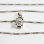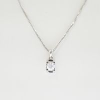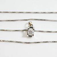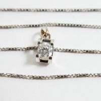 Collier maillons venitiens en or gris 750 mil (Larg : 1 mm ; Long : 51 cm), Pendentif en or gris 750 mil orné d'un diamant (environ 0,30 ct). 4,2 g brut.