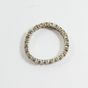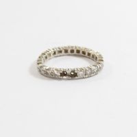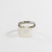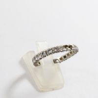 E) Art L833-2 du CGI : Alliance en platine 850 mil (déformée) ornée de diamants (5 pierres accidentées, 3 manquantes) (environ 1,70 ct au total). 4,6 g brut.