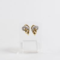 Paire de boucles d'oreilles en or 750 mil à entrelacs ornées d'un diamant 8/8 (Dim : 1,2 x 0,9 cm environ). 1,6 g brut.